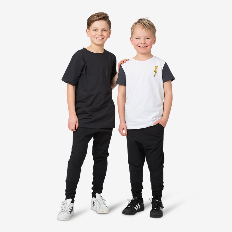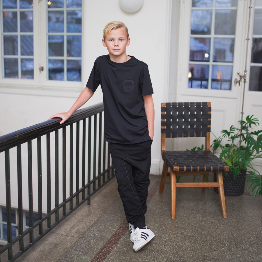 I en lite tunnare single jersey kommer här en riktigt frän långtröja för alla tuffa kids. Svart Friendly scull tryckt på bröstet. Små sprund i sidorna och en aning längre bak än fram. Längs med hela ryggen går en svart lite bredare rand som en fin och diskret detalj. Matcha den gärna med Rocker pants black och dina skönaste sneakers och du blir tuffast på skolgården.