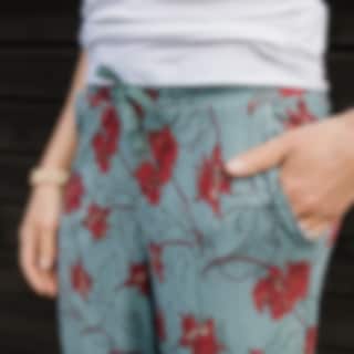 Byxor med härlig vidd och 7/8 dels längd. De är gjorda i mjuk modaljersey som har en sammetslen yta. Byxan har en bredare fåll nedtill som ger byxbenet lite tyngd. Enkel resår i midjan med knytband. En älva är broderad på bak under linningen. Modellen på första bilden är 164 cm lång och bär storlek XS.
