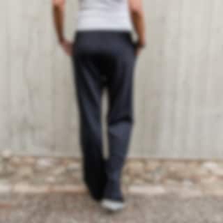 Infinity pants är ett par vida byxor i stretchig jersey. De har hög midja med resår och ett band man kan knyta. Sköna fickor framtill och sydda pressveck mitt på byxbenen. Modellen på första bilden är 164 cm lång och bär storlek XS.