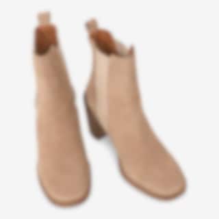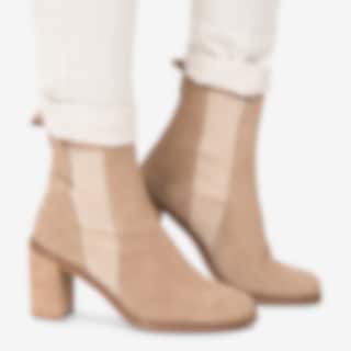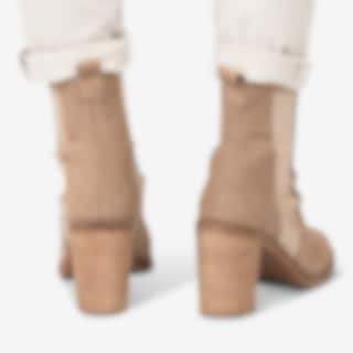 En klassisk stövlett med trendiga detaljer så som snyggt infällda resårkilar i skaftets in- och utsida och en lite fyrkantigt trubbig tå. Stövletten har en snygg och rätt så hög klack på ca 7,5 cm. Mockan är mjuk och följsam. Slät enkel sula. Lilla älvan finner du präglad längst upp på dra-på-flärpens baksida.