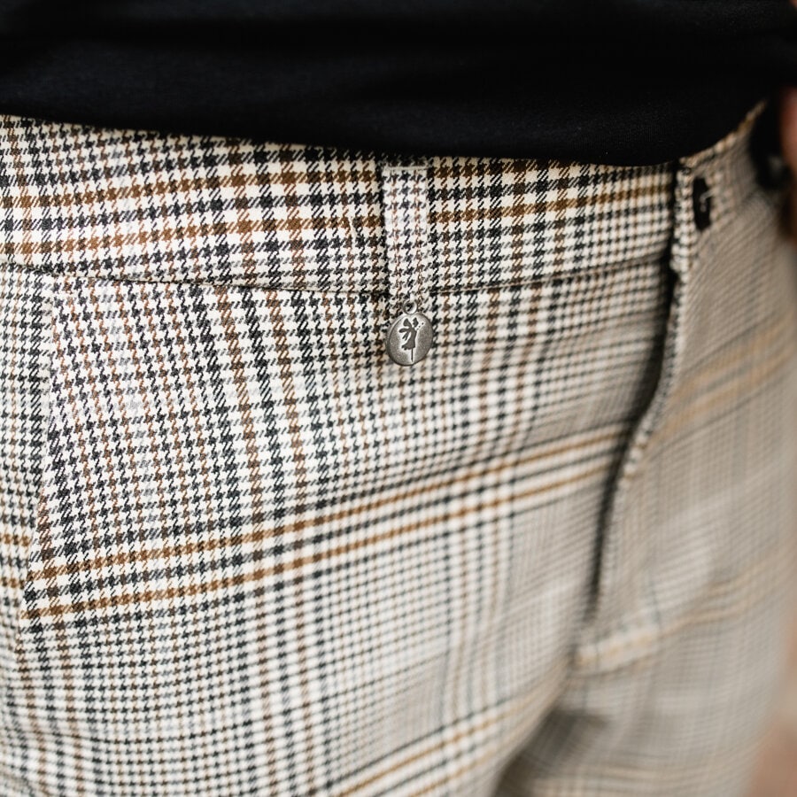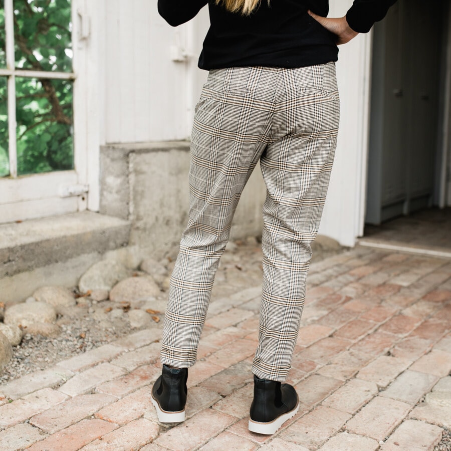 Geezer pants är ett par snyggbyxor i ett skönt vävt tyg. De har normalhög midja och lösare passform. Byxorna har hällor och gylf samt fickor fram och fuskfickor bak. En berlock sitter i ena hällan fram. Modellen på första bilden är 173 cm lång och bär storlek XS.